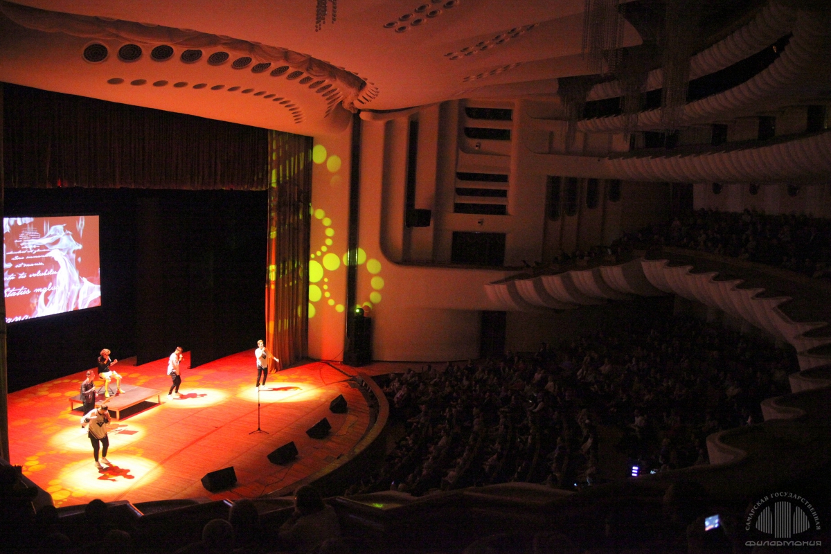 Группа «ПЯТЕRО» развенчала представление, что пение a cappella — это скучно, предоставив на суд самарских слушателей вокальное шоу, в котором показала безграничные возможности человеческого голоса, весь спектр тембров, имитацию звучания различных музыкальных инструментов, ритм-секции (в технике битбокса).