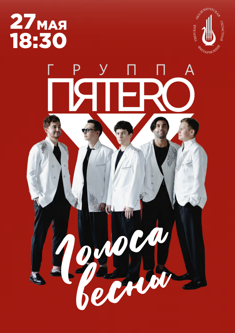 27 мая в 18:30 группа ПЯТЕRО выступит в Тверской филармонии с программой «Голоса весны»