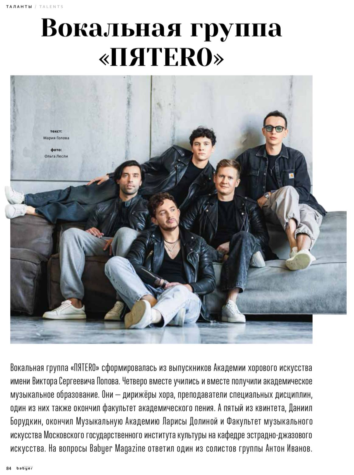 Солист группы ПЯТЕRО Антон Иванов дал интервью журналу «BABYER Magazine», которое вышло в